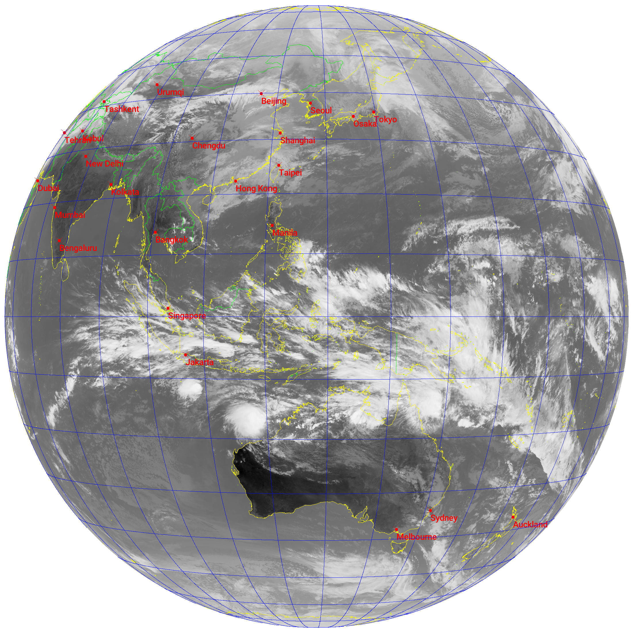 - 成果: 我们不仅捕捉到了频谱瀑布图,还通过解调软件Satdump还原出了实时的卫星云图。这验证了地面站系统搭建的成功。